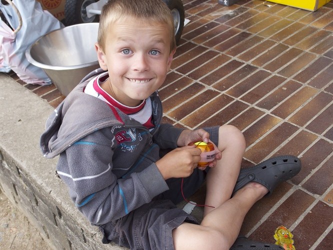 Oblíbenou hrou na celé odpoledne je Jarmark. Spousta her, které si dítě volí podle libosti, získává prachy a za ně jde ke kolu štěstí. Podle vytočené barvy získává odměnu (díky všem dárcům!). Rande - hádej čas, Tříděný odpad - prohoď frisbee, Holubi na sochách - tref flusačkou, Čti město - poznej divné značky, Semafory - vyměň sklíčko, Zlomená srdce - sestav fotku, Válka gangů - majzni protivníka, Kanalizace - vylov náušnici, Taxi - hledej ulici, Demolice - srovnej se zemí.